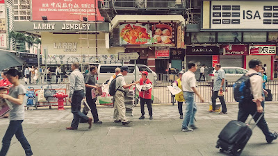 | Strolling the inner skirts of Nathan Road. |